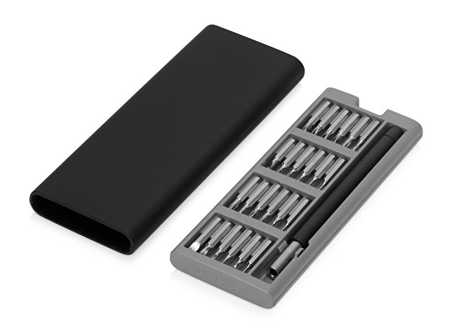 Отвертка с набором сменных насадок — лаконичная замена громоздкому комплекту отверток. 24 насадки для самых разных типов крепежа компактно хранятся в небольшом футляре, который удобно носить с собой. Замена насадки занимает считанные секунды. Минималистичный строгий дизайн превращает набор в функциональный бизнес-подарок. |