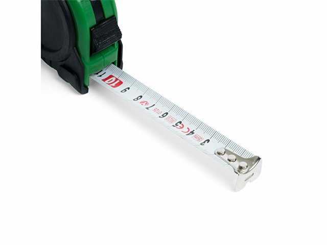 5-метровая рулетка с фиксирующим механизмом. Цветной прорезиненный корпус с резиновым чехлом, металлический зажим и ремешок для переноски. |