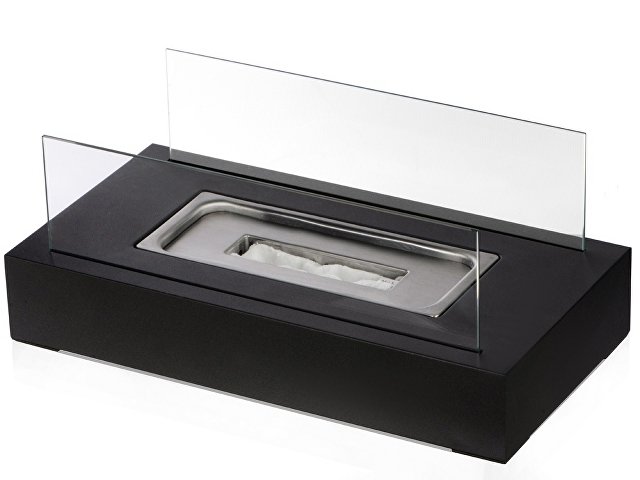 Стильный, минималистичный, он идеально впишется в облик любого пространства, а нанесение тампопечатью, деколью или трафаретной печатью превратит стеклянные стенки в идеальный пылающий фон для лого — кстати, можно обыграть прямоугольную форму биокамина, создавая дизайн в виде интересной рамки. Кроме того, логотипом можно украсить и металлическое основание, добавив гравировку.
