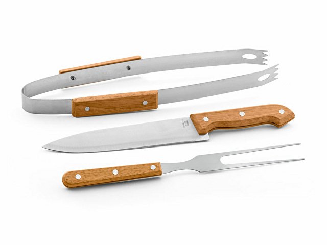 Набор из 3 предметов для барбекю из дерева и нержавеющей стали. Набор из 3 предметов в жестком футляре 210D. |