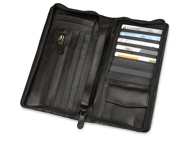 Стильное трэвел-портмоне из натуральной кожи позволит организовать хранение визитных и пластиковых карт. В портмоне предусмотрены карманы под купюры. Портмоне прекрасно подойдет для подарка женщинам и мужчинам. |