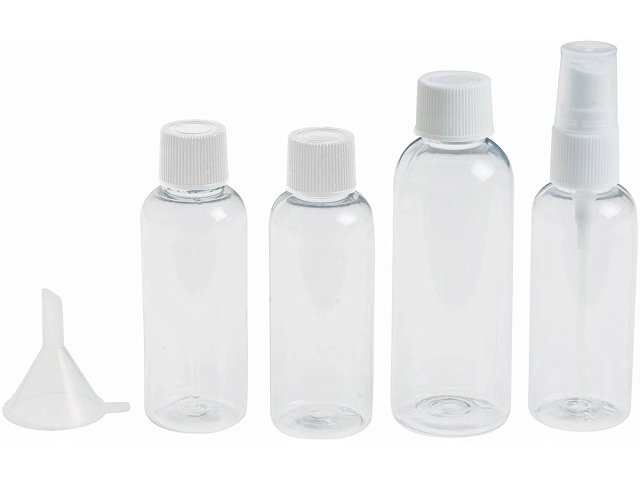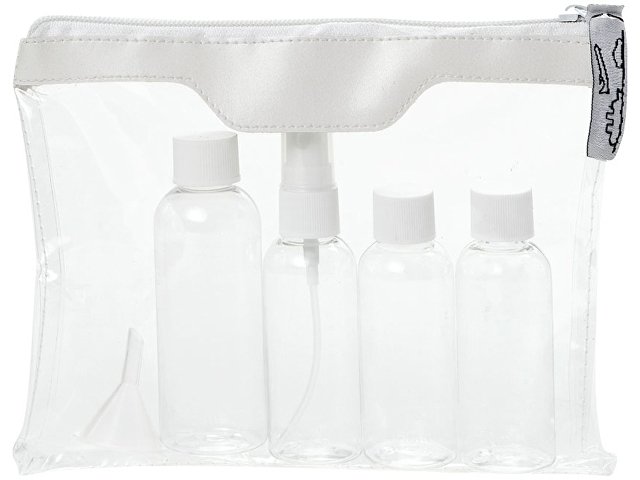 Одобренный дорожный набор бутылок для полетов Munich. Сумка для туалетных принадлежностей, которую можно брать в самолет. Включает 2 бутылки по 50 мл, 1 бутылку на 90 мл, 1 пульверизатор и воронку. Бутылки, пульверизатор и воронка упакованы в полиэтиленовый кулек отдельно от чехла. ПВХ. |