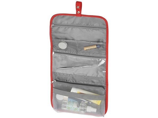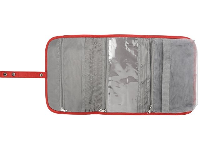 Органайзер состоит из карманов на молнии, карманов-сеток, прозрачного моющегося кармана на молнии, в который можно поместить флаконы с жидкостью — даже если емкость разгерметизируется, карман легко очистить под струей воды.