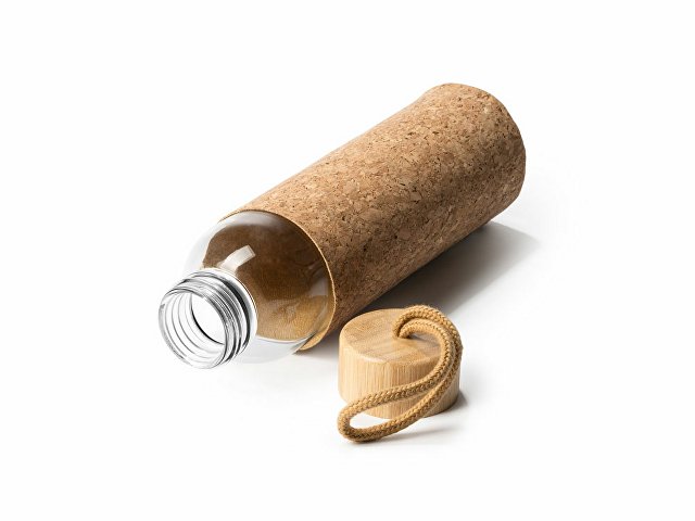 Стеклянная бутылка в чехле из натуральной пробки. Бамбуковая крышка с практичной ручкой для переноски, поэтому вы можете брать ее с собой куда угодно. Емкость 500 мл. |