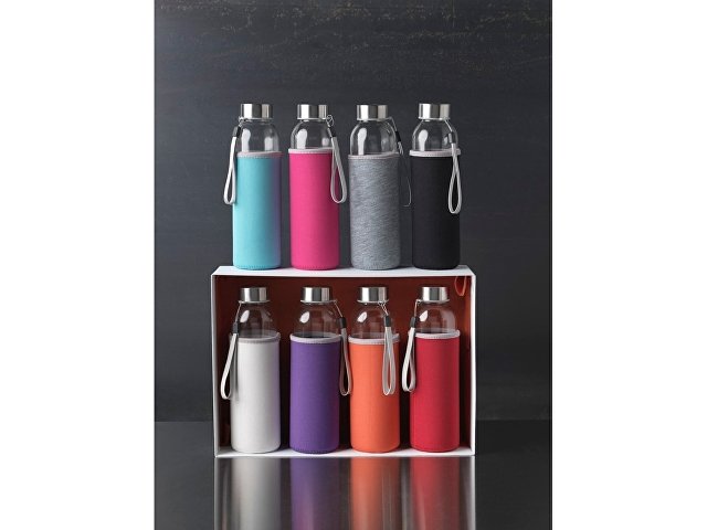 Стеклянная бутылка с одинарными стенками и съемной крышкой. На крышке есть ремешок для легкой переноски, кроме того имеется чехол из неопрена. Рекомендуется использовать для холодных напитков. Не замораживать, не разогревать в микроволновой печи. Объем 500 мл. Уложена в подарочную коробку. |