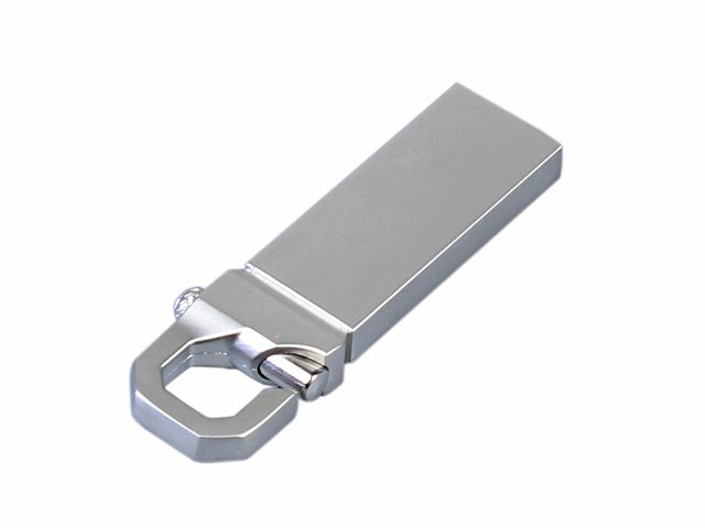 Флеш-накопитель с мини чипом, компактный дизайн, отверстие прямоугольной формы для цепочки, объем памяти 4 Гб. Поставляется с цепочкой.