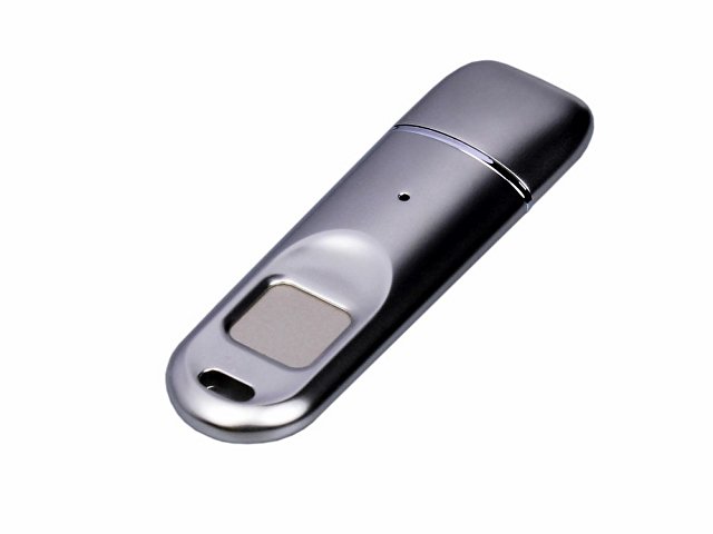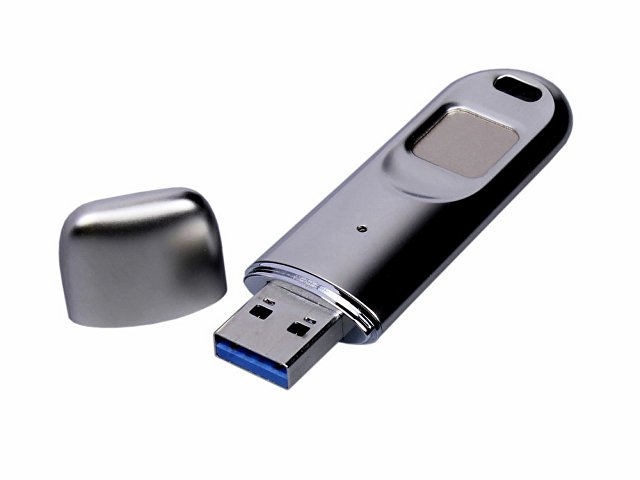 Классическая металлическая флешка с колпачком и сканером отпечатков пальцев.