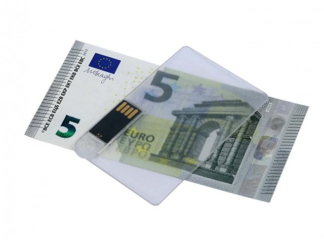 Флеш-накопитель в виде прозрачной пластиковой карты., объем памяти 16 Гб. Пластиковый корпус.