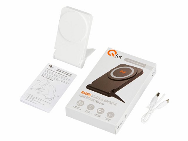 Представляем магнитный пауэрбанк MagnIQ на 5 000 мАч с удобной складной подставкой. Это идеальное решение для тех, кто ценит удобство и стиль. Внешний аккумулятор крепится к смартфону за счет встроенных магнитов (подходит для iPhone от 12 версии или для любого смартфона со специальным металлическим кольцом на задней крышке). Пауэрбанк оснащён встроенной складной подставкой, которая обеспечивает комфортное использование смартфона одной рукой как горизонтально, так и вертикально. Больше не нужно беспокоиться о том, что ваш телефон упадет или будет заряжаться лёжа на боку. Просто установите его на подставку и продолжайте использовать устройство без прерывания процесса зарядки. В комплекте зарядный кабель USB-A - USB-C для зарядки пауэрбанка. Кабель для зарядки других устройств от повербанка в комплект не входит. Большое пространство для нанесения логотипов -на фронтальной панели, на задней крышке, на подставке.