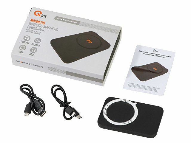 MagnetIQ надежно крепится к iPhone от 12 версии и новее при помощи сильных встроенных магнитов и заряжает по быстрой беспроводной зарядке 10 Вт. Также пауэрбэнк быстро заряжается по двойному USB-C кабелю из комплекта (при наличии USB-C сетевого адаптера мощностью от 18 Вт), и может заряжать быстро другие устройства по USB-C и USB-A портам. Внешний аккумулятор имеет встроенный металлический держатель-подставку на задней стороне, благодаря чему удобно держать заряжаемый смартфон в руках или устанавливать смартфон на рабочем столе. В комплекте есть металлическое кольцо для беспроводной зарядки смартфонов без встроенных магнитов. В базовой комплектации - двунаправленный кабель USB-C с поддержкой быстрой зарядки и кабель для проводной зарядки прежних iPhone USB - Lightning.