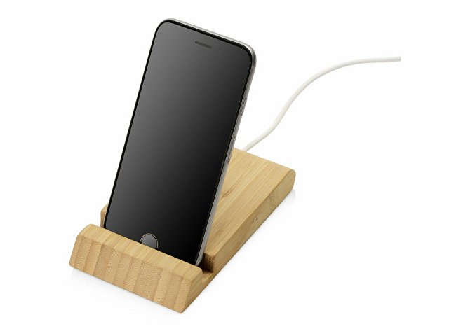 Беспроводное зарядное устройство Jetty в корпусе из натурального бамбука поддерживает функцию быстрой зарядки Qi-совместимых моделей смартфонов. Также устройство можно использовать как подставку для смартфона.