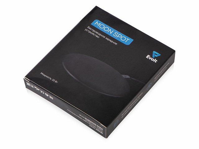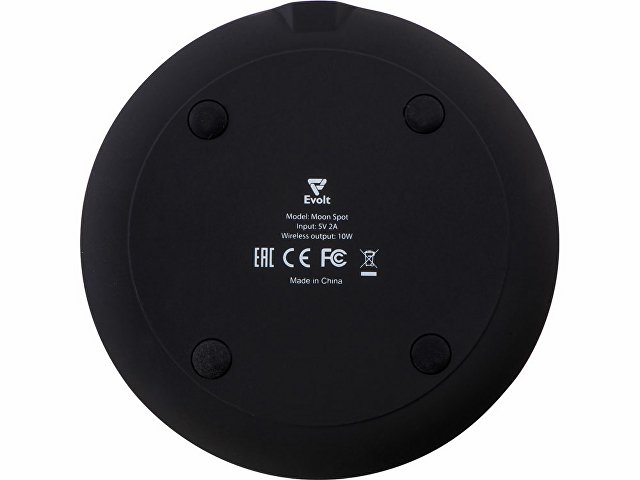 Moon spot — беспроводное устройство для зарядки в бархатистом корпусе софт-тач от Evolt. При гравировке верхний слой снимается, открывая подсветку — на бархатистом черном фоне светящиеся белым контуры выглядят особенно ярко и контрастно.