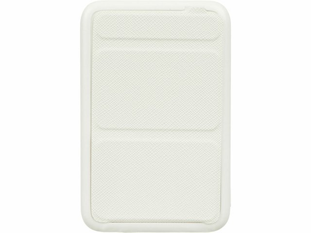 Сзади расположена пластичная складная подставка из качественного полиуретана с зернистой текстурой. В развернутом виде на столе подставка позволяет пользоваться смартфоном одной рукой, при этом, благодаря магнитным держателям, смартфон может быть расположен как вертикально, так и горизонтально.