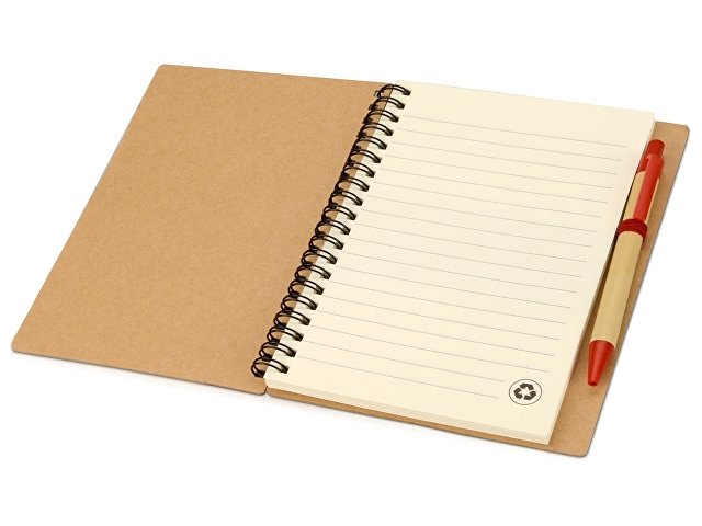 Блокнот Priestly с ручкой. Блокнот с 60 листами линованной бумаги вторичной переработки и ручкой под цвет блокнота. На обложку блокнота и ручку можно нанести яркий логотип. |