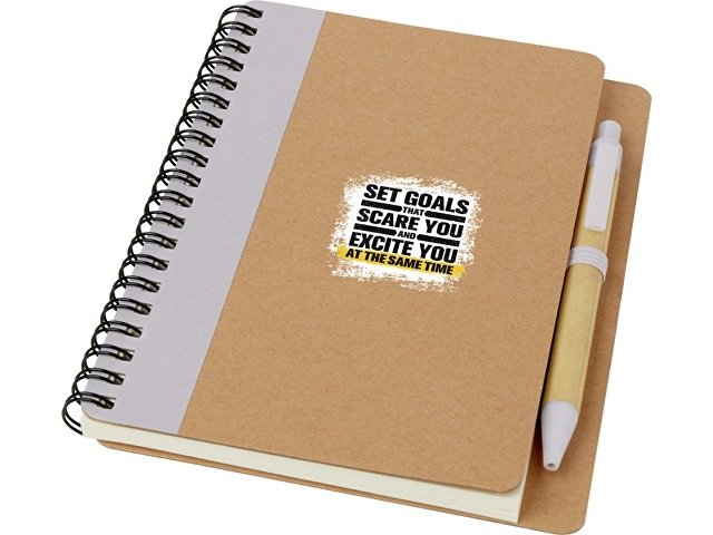 Записная книжка с обложкой из переработанной бумаги. 60 линованных листов, переработанная бумага формата А6, ручка в комплекте. Переработанная бумага. |