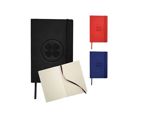 Классический блокнот с мягкой обложкой. Блокнот с мягкой на ощупь обложкой (ориентир размер А5) с эластичной застежкой, закладкой, кармашком для заметок внутри и 80 листов линованной бумаги (80 г/м?). Термо ПУ. |