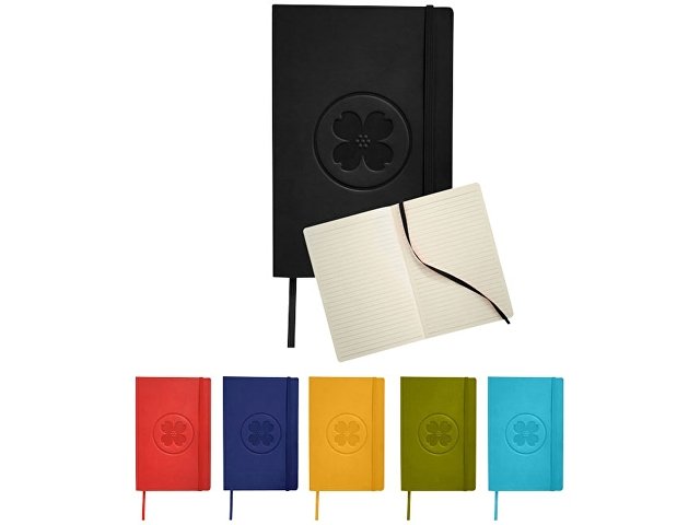 Классический блокнот с мягкой обложкой. Блокнот с мягкой на ощупь обложкой (ориентир размер А5) с эластичной застежкой, закладкой, кармашком для заметок внутри и 80 листов линованной бумаги (80 г/м?). Термо ПУ. |