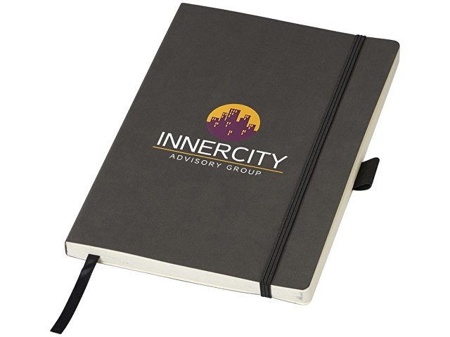 Блокнот Revello. Мягкий на ощупь, гибкий блокнот (размер А5 для ориентации) со встроенной эластичной застежкой, закладкой, петелькой для ручки и кармашка для документов на внутреннем форзаце сзади. 80 листов кремовой линованной бумаги (80г/м2). Упакован в черную коробку-рукав. Кожа ПУ. |