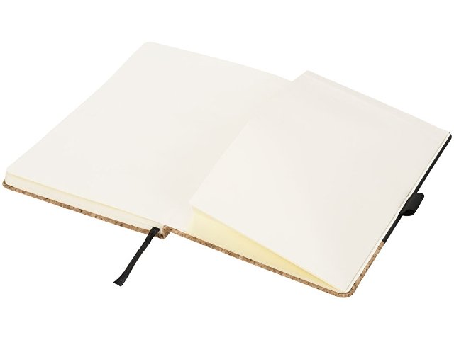 Блокнот Evora формата A5 из пробки и термополиуретана. Стильный блокнот формата A5 с твердой обложкой из искусственной кожи и пробки. Цветная эластичная застежка, лента-закладка, 80 листов линованной бумаги (80 г/м?) кремового цвета и расширяемый карман сзади для небольших заметок. Пробка и ПУ. |