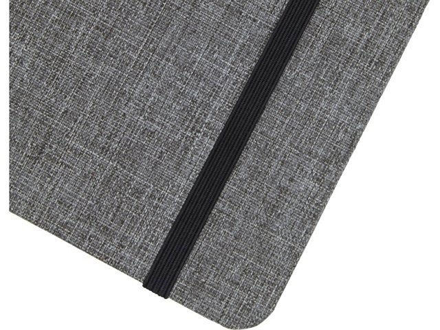 Блокнот формата А5 с отделкой из переработанного ПЭТ. Содержит 96 листов в линию плотностью 70 г/м?, изготовленных из переработанной бумаги, с петлей для ручки и лентой-закладкой. В упаковке из картона. |