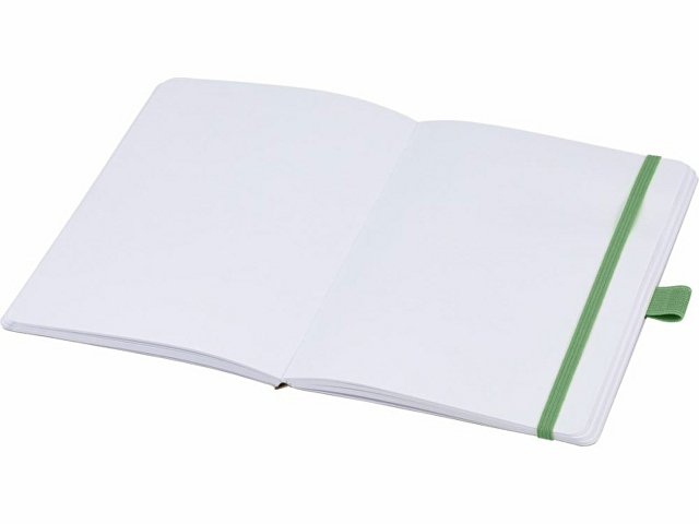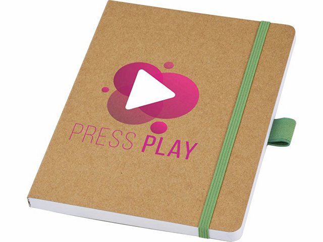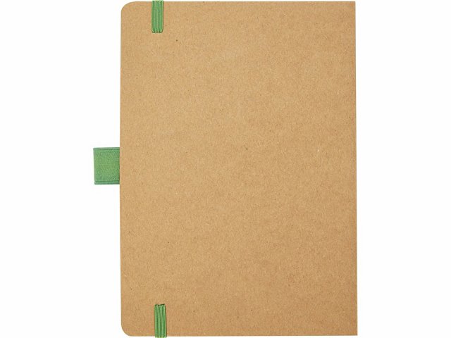 Блокнот формата из линованной переработанной бумаги (70 г/м?) с закругленными углами, цветной резинкой и петлей для ручки, соответствующей 107384 цветам ручки. |