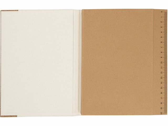 У блокнота двойная обложка: основная из картона из-под молочных пакетиков и пробки, вторая обложка из крафта с линейкой, которая может пригодиться в любой момент.