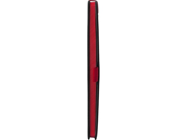 Блокнот в твердой обложке с закругленными углами черного цвета. Ляссе, резинка и срез яркого контрастного цвета делают его очень стильным и функциональным бизнес-аксессуаром.