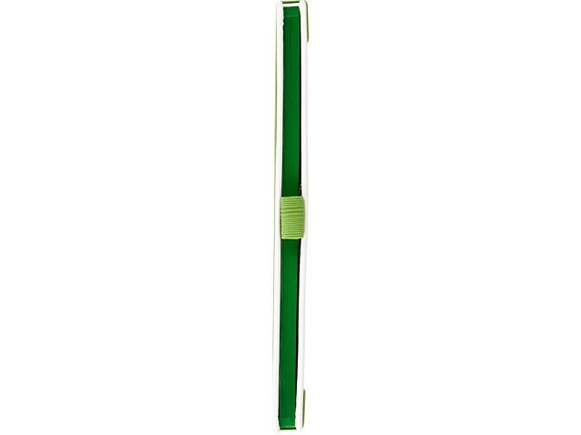 Блокнот в твердой обложке с закругленными углами белого цвета. Ляссе, резинка и срез яркого контрастного цвета делают его очень стильным и функциональным бизнес-аксессуаром.