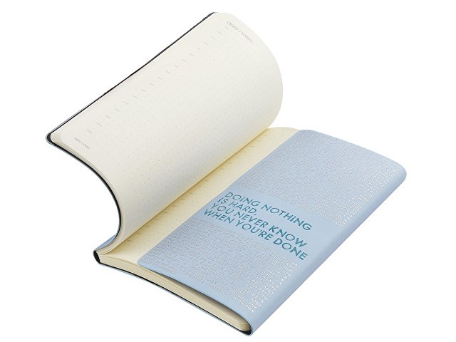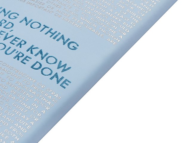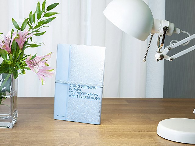 Так трудно ничего не делать, ведь совершенно непонятно, когда ты закончишь! Лаконичный слоган мотивирует к активным действиям. Планируй и завершай! Вот что кроется в элегантной надписи, выполненной золотым тиснением! А Flex обложка напоминает Будь гибким! Великолепный недатированный ежедневник Bilbao черно-синего цвета с тиснением фольгой. Бежевая бумага 65 г/м, широкая горизонтальная фиксирующая резинка. Гибкая обложка с покрытием Soft-touch. Особенность этого ежедневника - часть обложки внахлест может использоваться как закладка. Ежедневник упакован в картонный полукороб и термопленку. |