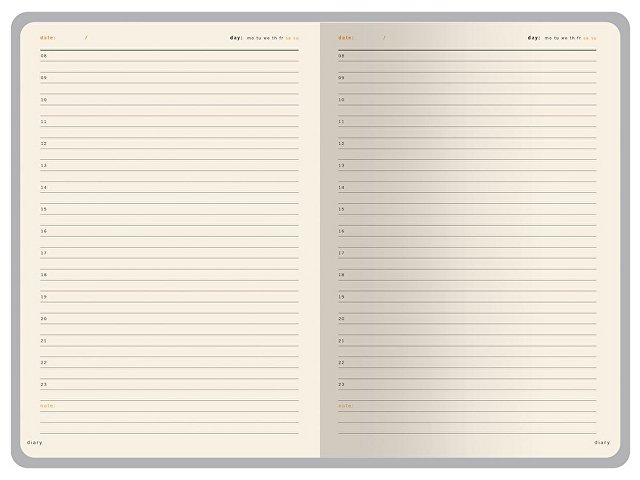 В ежедневнике Prestige есть полезная справочная информация на русском языке, а также страницы для записи идей, мыслей и составления рабочих планов. Дни недели указаны сокращенно на английском языке. Для изготовления страниц используется качественный бежевый офсет повышенной плотности (70 г/кв м), который производится в Японии и подходит для всех видов чернил. Разметка блока с указанием времени позволяет планировать дела с точностью до 1 часа.