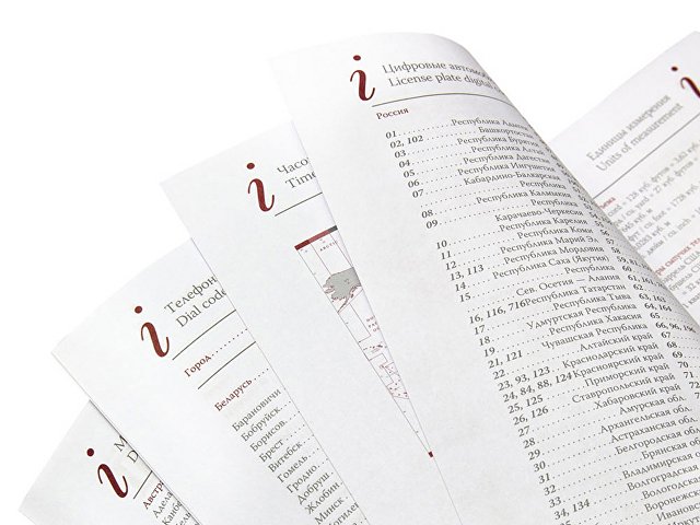 В ежедневнике есть полезная справочная информация и телефонная книга, а также страницы для записи идей, мыслей и составления рабочих планов. Есть перфорация (нижние уголки отрывные). Для изготовления страниц используется качественный бежевый офсет повышенной плотности (80 г/кв м), которая производится японской фирмой Daiwa и подходит для всех видов чернил.