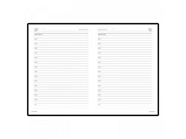 В ежедневнике Sidney Nebraska есть полезная справочная информация и телефонная книга на 18 листов, а также 272 страницы для записи идей, мыслей и составления рабочих планов. Для изготовления страниц используется качественный бежевый офсет повышенной плотности (70 г/кв м), который производится в Японии и подходит для всех видов чернил. Разметка блока с указанием времени позволяет планировать дела с точностью до 1 часа.