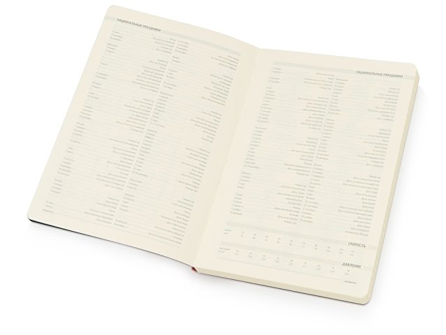 В ежедневнике Megapolis Flex есть полезная справочная информация и телефонная книга, а также страницы для записи идей, мыслей и составления рабочих планов. Для изготовления страниц используется качественный бежевый офсет повышенной плотности (70 г/кв м). Блок не привязан к конкретным датам – они указываются в выделенном поле вверху страницы. Тонированная бумага не дает глазам утомиться даже при длительной работе.