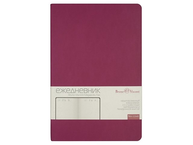 Недатированный ежедневник Megapolis Flex от бренда Bruno Visconti - это качественный корпоративный подарок по выгодной цене, произведенный специально под персонализацию. Представлен в универсальном формате А5 и состоит из 272 страниц. Элегантная закругленная flex обложка из гладкого кожзама имеет гибкую конструкцию и приятна на ощупь. А интегральный переплет позволяет сэкономить место в деловой сумке или портфеле – ежедневник можно просто свернуть в трубку или согнуть пополам.
