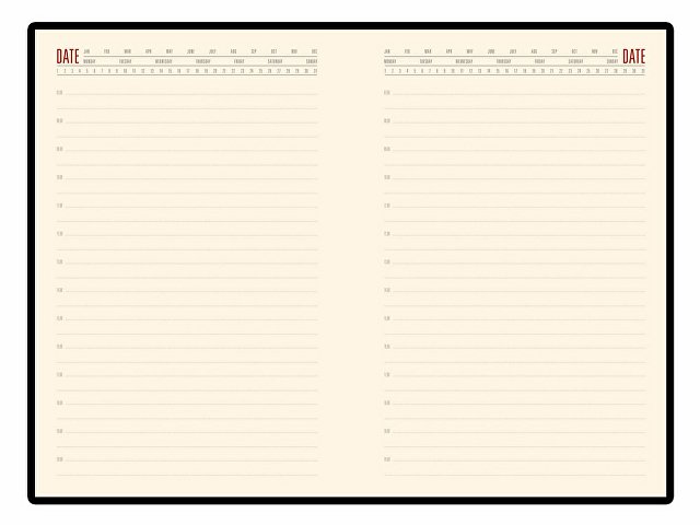 Внутри есть страница для личных данных, а также блок справочной информации (часовые пояса, аэропорты, телефонные коды, размеры одежды, автомобильные коды, римские цифры, расход калорий, формат бумаги, единицы измерения, штрихкоды, распад алкоголя в крови, города миллионники РФ и СНГ, национальные праздники, термины международной торговли, температура, скорость, давление, буквенные коды стран, энергетическая ценность продуктов, страны мира). |