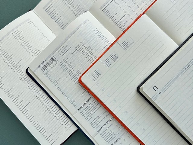 Внутренний блок ежедневника содержит справочную информацию на 19 страницах, телефонную книгу на 26 страницах и блок для ежедневного планирования в линейку с указанием времени суток (интервал в один час). Блок изготовлен из бежевой бумаги плотностью 70 г/кв.м. |