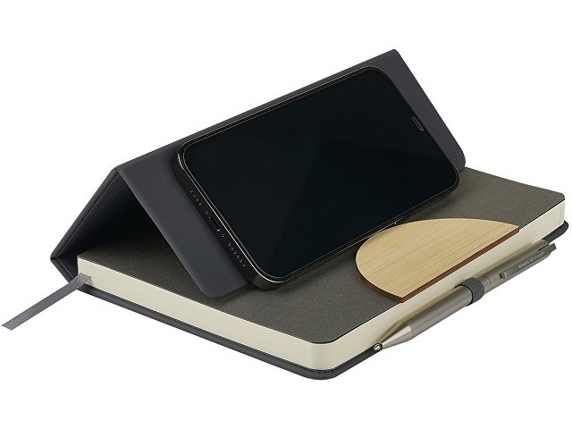 Обложка, выполненная из экокожи с покрытием Soft Touch, создает приятные тактильные ощущения при соприкосновении с ежедневником. Украшает обложку деревянный элемент и вырубка в форме полукруга. Ну, а вишенка на торте – мягкая линия сгиба в центре обложки, позволяющая использовать ежедневник в качестве подставки под телефон. А маленькая петля из резинки – отличное решение для фиксации шариковой ручки, она всегда будет под рукой. Есть еще одна удобная деталь ежедневника - ляссе в цвет обложки для быстрой навигации.