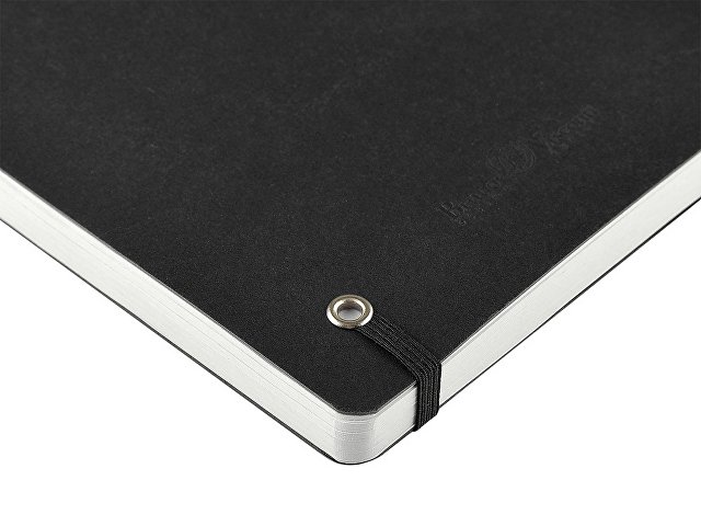 Широкая резинка несет в себе как функциональное значение – не позволяет ежедневнику раскрываться и может служить закладкой, так и как элемент дизайнерского решения.