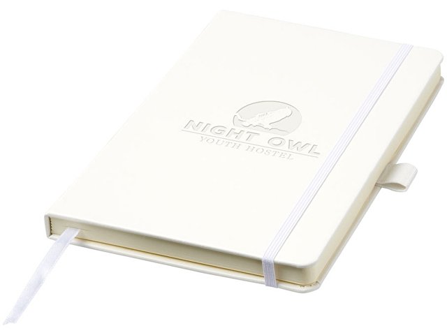 Записная книжка Nova формата A5 с переплетом. Записная книжка из искусственной кожи формата A5 (14,2 x 21,4 см) с резинкой, лентой-закладкой, петлей для ручки и задним карманом. Состоит из 96 листов линованной бумаги кремового цвета плотностью 80 г/м2 и поставляется в белом футляре Journalbook. Бумага, имитирующая кожу. |