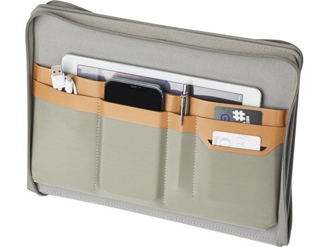 Папка- органайзер Nomumi, сертифицированная RCS, частично изготовлена из переработанного полиэстера, бывшего в употреблении, что делает данную папку более экологичным выбором, поскольку помогает сократить использование первичного сырья. Имеет застежку-молнию, петлю для ручки, карман-гармошку и 20 белых листов в линейку из переработанной бумаги плотностью 70 г/м? из экологически чистых источников. Ручка и другие аксессуары, представленные на фотографиях, в комплект поставки не входят. FSC certified paper. FSC Mix Credit P7 CU-COC-877277. |
