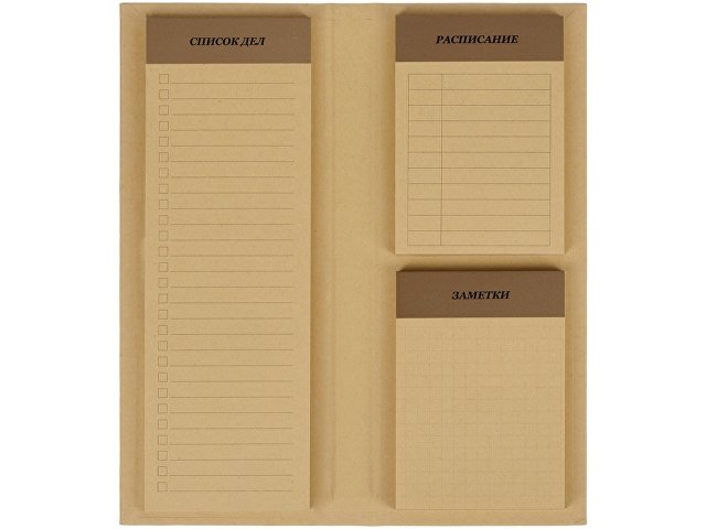 Все листы отрывные с микроперфорацией, что позволяет их легко менять. В каждом из 3-х блоков по 60 листов, каждый из которых имеет свою линовку и подписан: Список дел, Расписание и Заметки.