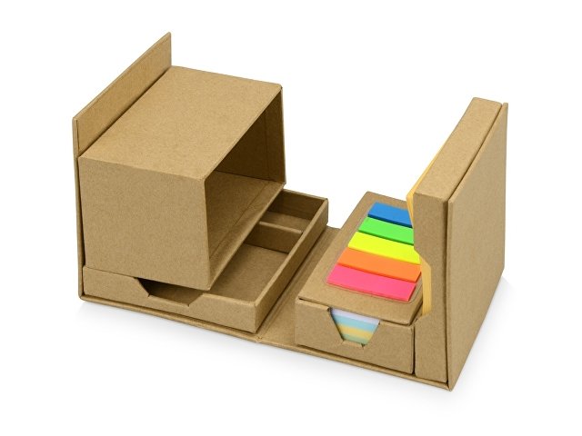 Оригинальная подставка для канцелярии Брик в сложенном виде представляет собой куб. А в разложенном – она превращается в удобный настольный прибор с отделениями для стикеров, бумаги для записей, скрепок и ручек. Настольный куб Брик сделан из бумаги и картона, и является отличным экосувениром. |