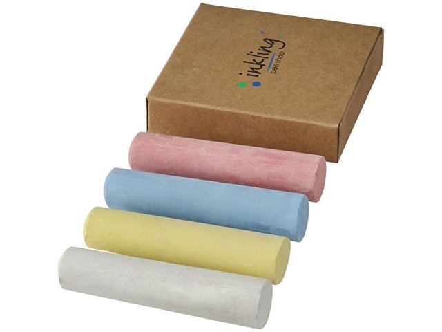 Набор мелков в натуральной коробке 4 единицы. 4 цветных мелка в бумажной коробке. Нанесение на элементах на предлагается. Бумага. |