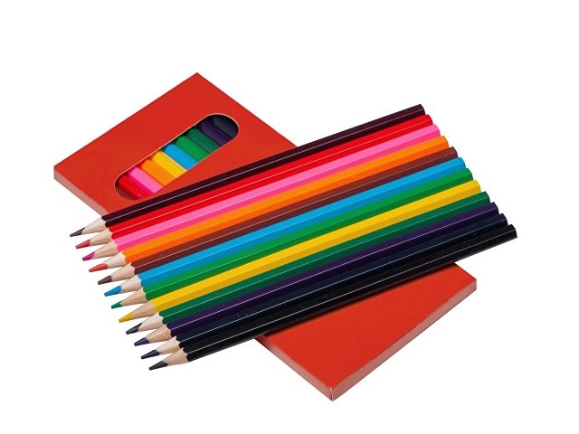 Набор из 12 шестигранных цветных карандашей твердостью ТМ. Нанесение можно сделать на всей поверхности упаковки |