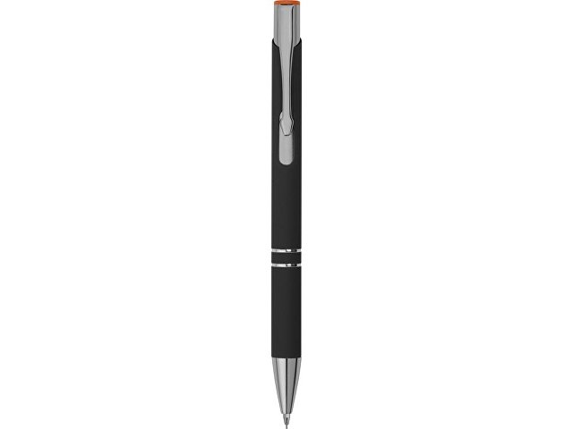 Черная шариковая ручка с кнопочным механизмом и тактильно приятным покрытием софт-тач. Цветная гравировка соответствует цвету кнопки и делает ее еще более изысканным подарком. |