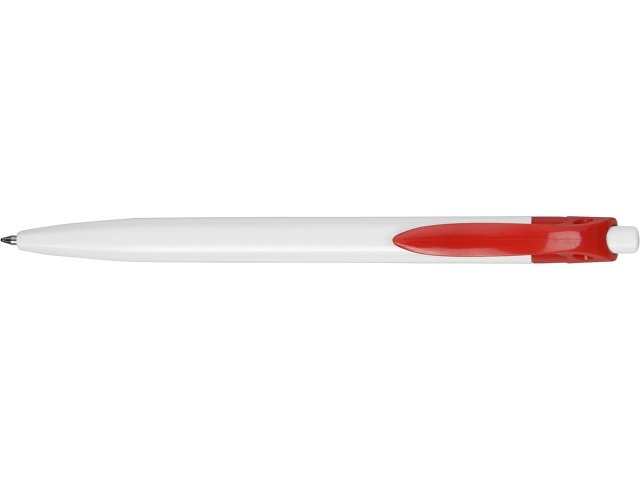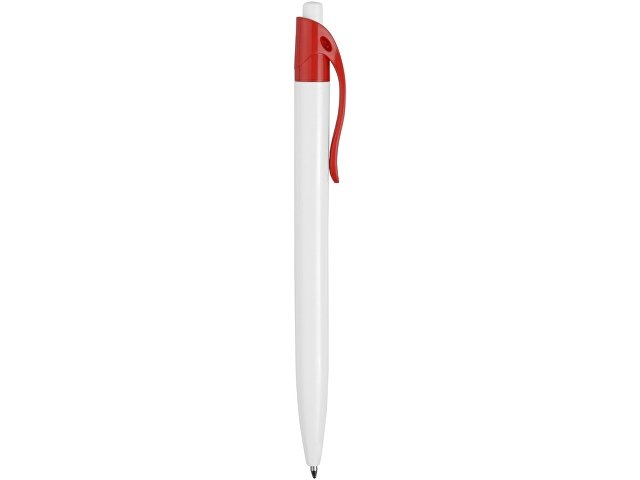 Стильная пластиковая ручка с ярким цветным клипом и белым корпусом отлично подойдет для нанесения логотипов и рекламной информации. Нажимной механизм. |