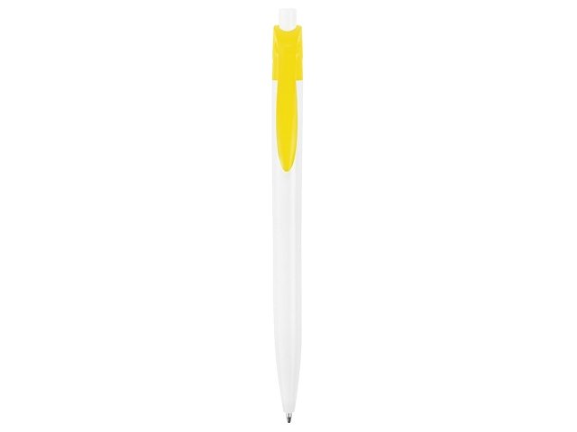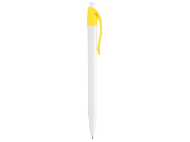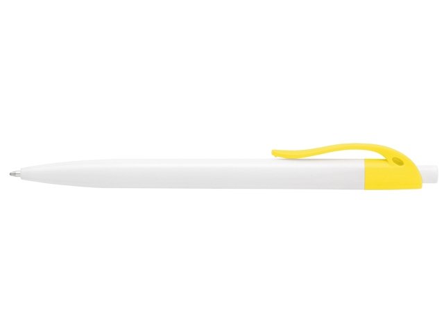 Стильная пластиковая ручка с ярким цветным клипом и белым корпусом отлично подойдет для нанесения логотипов и рекламной информации. Нажимной механизм. |