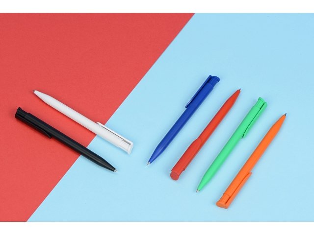 Ручка с нажимным механизмом, корпус из матового непрозрачного пластика.