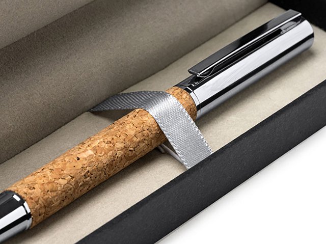 Ручка роллер из натуральной пробки и металла. Поставляется в элегантном футляре из пробки с мягкой внутренней отделкой. |