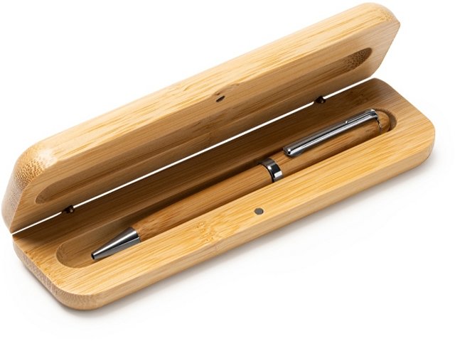 Шариковая ручка из бамбука с металлическими деталями. Поставляется в бамбуковом футляре на магните |
